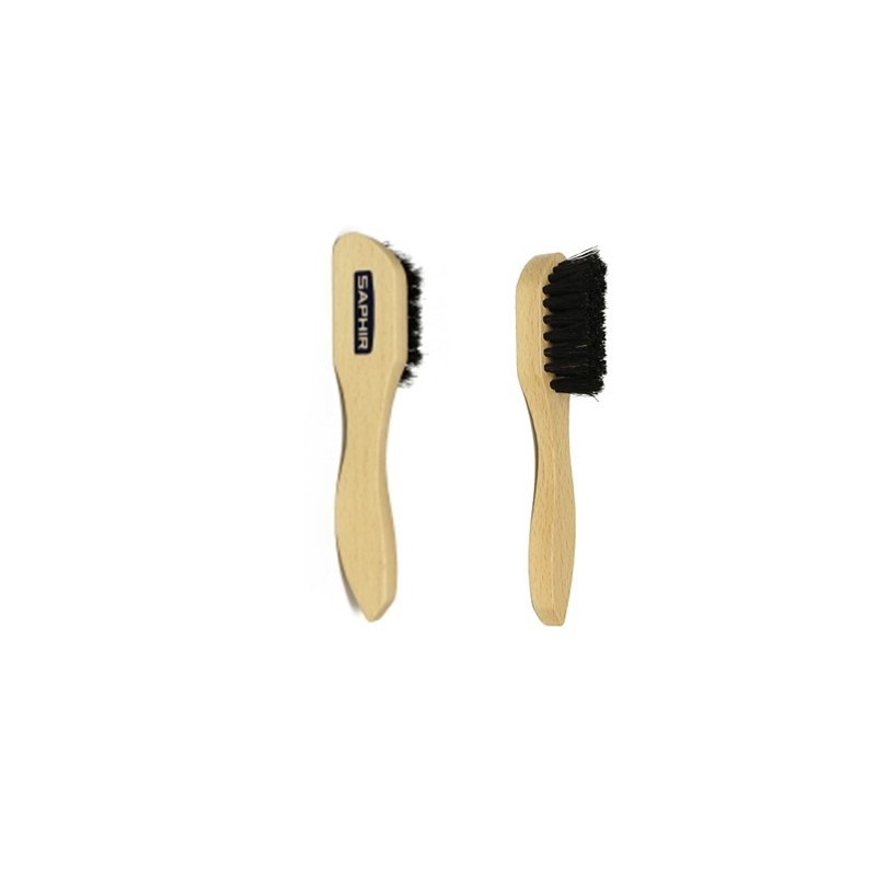 Brosse, ergonomique en bois de hêtre vernis, pour appliquer votre cirage ou crème sur le cuir de vos chaussures. Véritable soie de sanglier